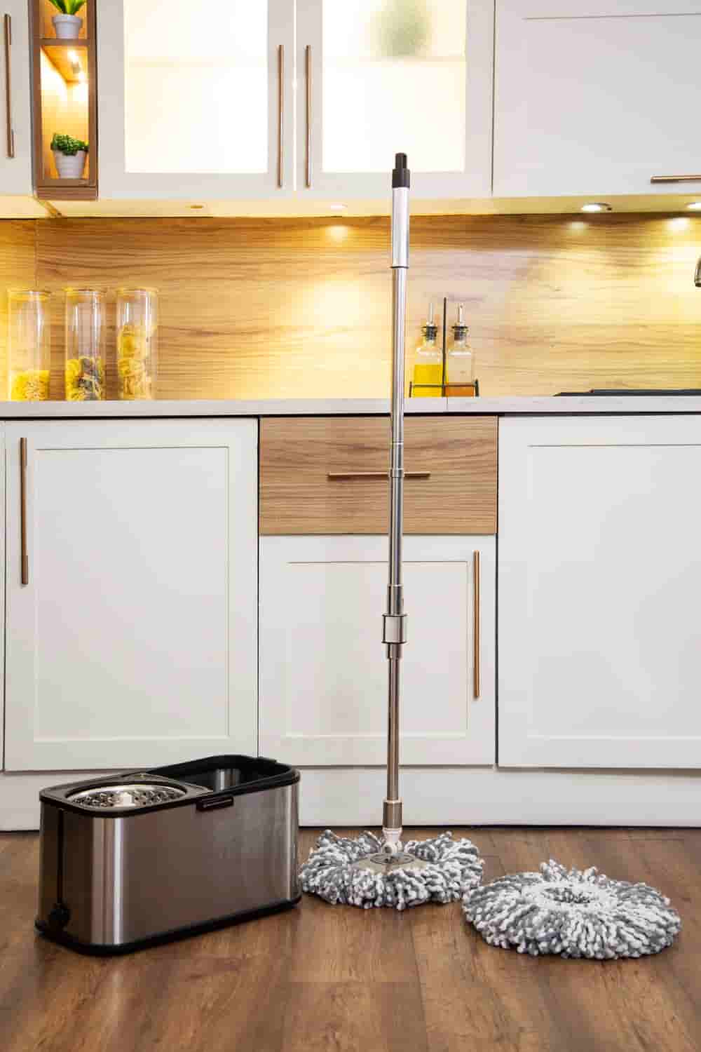 تی مقاوم و بادوام !! این تی با قابلیت شستشو و خشک کردن در دو مرحله فقط با چرخش کفه تی و بالا و پایین بردن دسته تی کاربد آن را بسیار آسان میکند . این تی با اندازه مناسب و حجم کافی ، بیشترین کاربرد را دارا میباشد . مکانیزم کارکرد این است مه با پرکردن اب درون مخزن تا سطح علامت گذاری شده ، تی را درون سطل گذاشته و با فشار دادن آن بر روی محور قسمت شستشوی سطل آن را مرطوب و شستشو نمایید.هر بار و با فشار بروی دسته قابلیت چرخشی را تکرار کنید . و برای آبگیری کامل آن را در سبد استیل آبگیر قرار داده و با استفاده از قابلیت چرخشی دسته آب را با بیشترین سرعت خشک نمایید ، دریچه خروجی آب تعبیه شده امکان خروج آب کثیق ناشی از شستشو را برای شما فراهم میکند.بدنه فوق با کیفیت استیل نگیر و طراحی زیبا همه ی چشم ها را به خود مجذوب میکند.